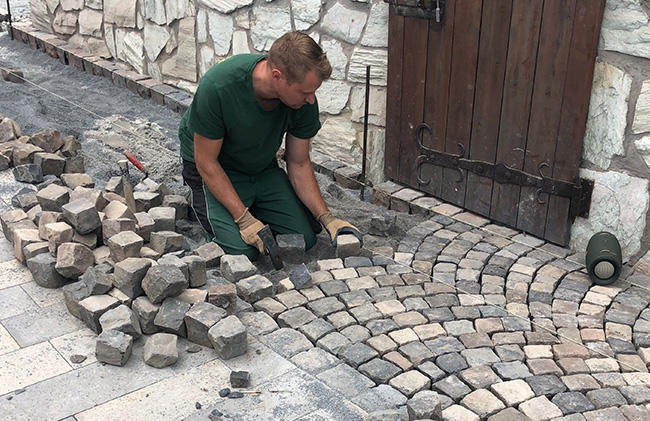 Unsere Leistungen umfasst die Planung und Herstellung von - Hauszuwegen - Treppen - Parkplätzen und Einfahrten - Randbefestigungen - Hangabfängen Wir verarbeiten Natur- und Betonstein als auch wasserdurchlässige Beläge wie Hydrostein.