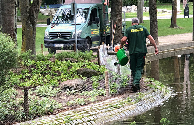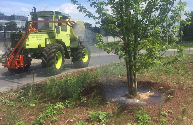 In Zeiten des Klimawandels mit anhaltenden Trockenperioden ist eine kontinuierliche Bewässerung von Neuanpflanzungen wie Jungbäumen oder Pflanzflächen zum Schutz der Pflanzen unabdingbar. Wir bewässern pflanzenschonend mit unseren Fahrzeugen Straßenbäume, Beete oder Grünflächen.